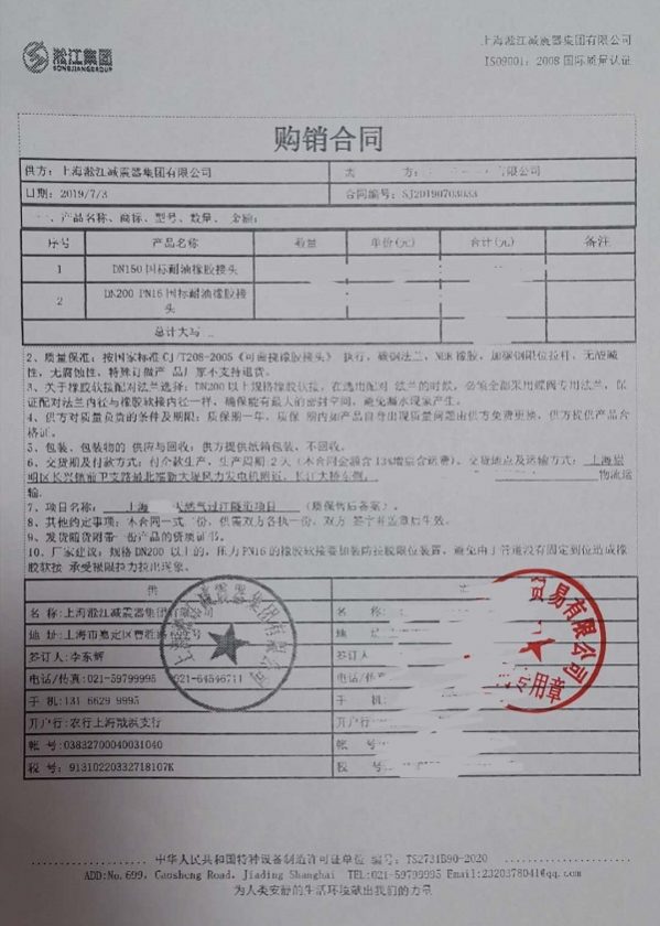 上海淞江減震器集團(tuán)有限公司為您介紹:上海天然氣過江隧道耐油橡膠補(bǔ)償器合同項(xiàng)目信息,淞江集團(tuán)為眾多天然氣過江隧道提供優(yōu)質(zhì)耐油橡膠接頭,以下是詳細(xì)介紹。