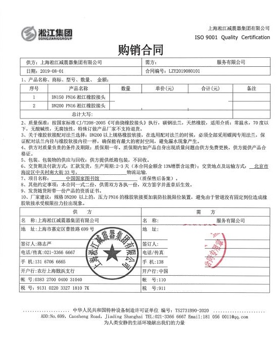 上海淞江減震器集團(tuán)有限公司網(wǎng)站為您介紹:國(guó)家圖書(shū)館橡膠彈性接頭合同項(xiàng)目信息,淞江集團(tuán)為中國(guó)國(guó)家圖書(shū)館項(xiàng)目提供優(yōu)質(zhì)橡膠接頭產(chǎn)品,質(zhì)保5年,另外為國(guó)家其他重點(diǎn)項(xiàng)目提供優(yōu)質(zhì)橡膠接頭。